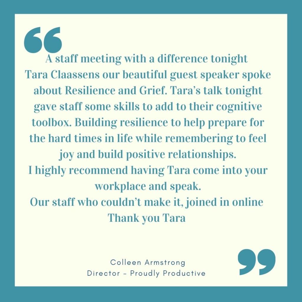 Tara is passionate about PEOPLE. Whether it’s living your best life, Christianity, grief, resilience or anything in between – contact Tara to speak at your event today!